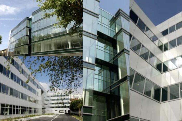Sur un terrain d’un hectare, immeuble tertiaire de 11.000 m² avec restaurant d'entreprise sur un parc en pleine terre avec conservation d’un cèdre remarquable.