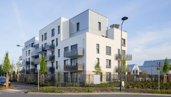 Ensemble immobilier mixte composé de maisons individuelles et d'un immeuble collectif en R+4 proposant des logements allant du studio au 5 pièces.