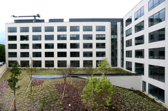 Projet tertiaire, façade pierre, généreux espaces paysagers, restaurant d’entreprises avec terrasse paysagère, salle de sport, gestion centralisée de la climatisation et des occultations. Ce projet réalisé avec les investisseurs CARVAL et MGPA a été revendu loué à la livraison à la Caisse de Dépôts.